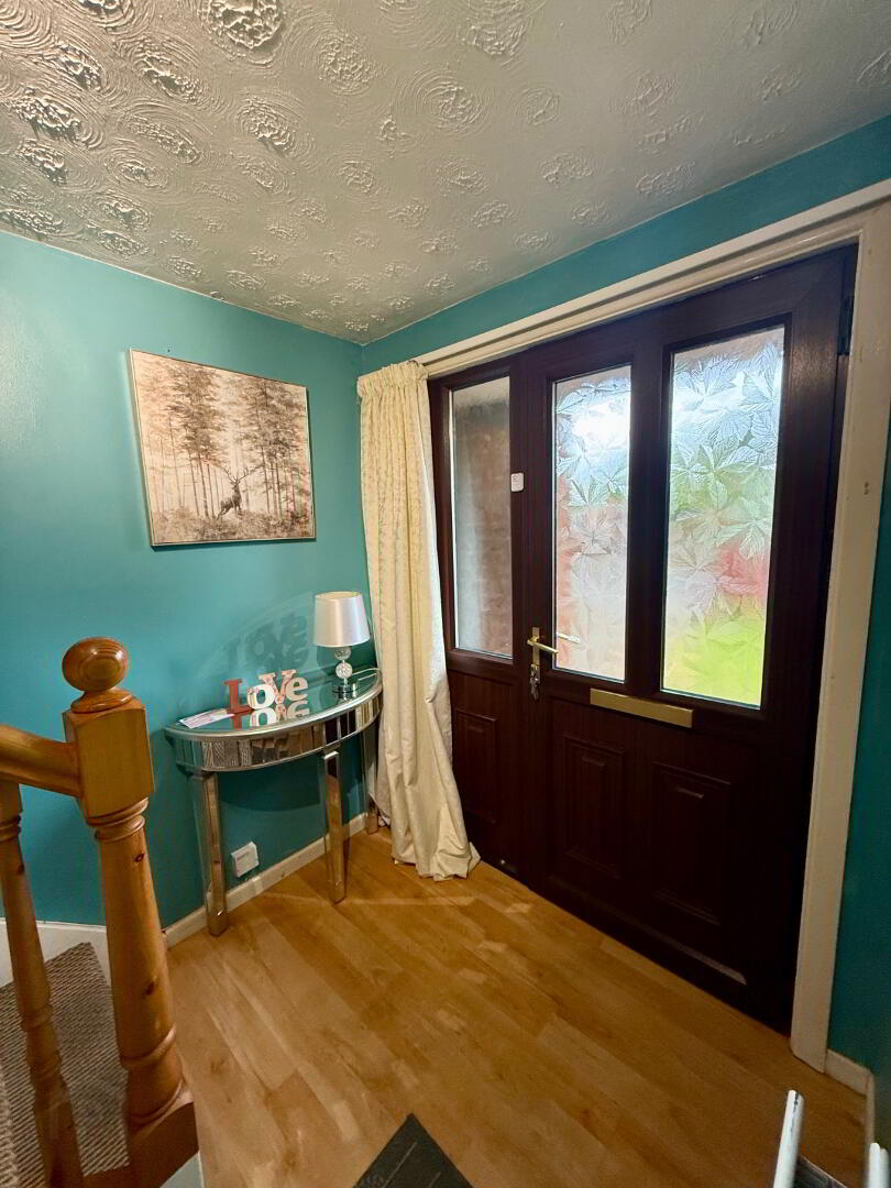 Porched area to front door, Laminated wooden floor, radiator, storage, power points.